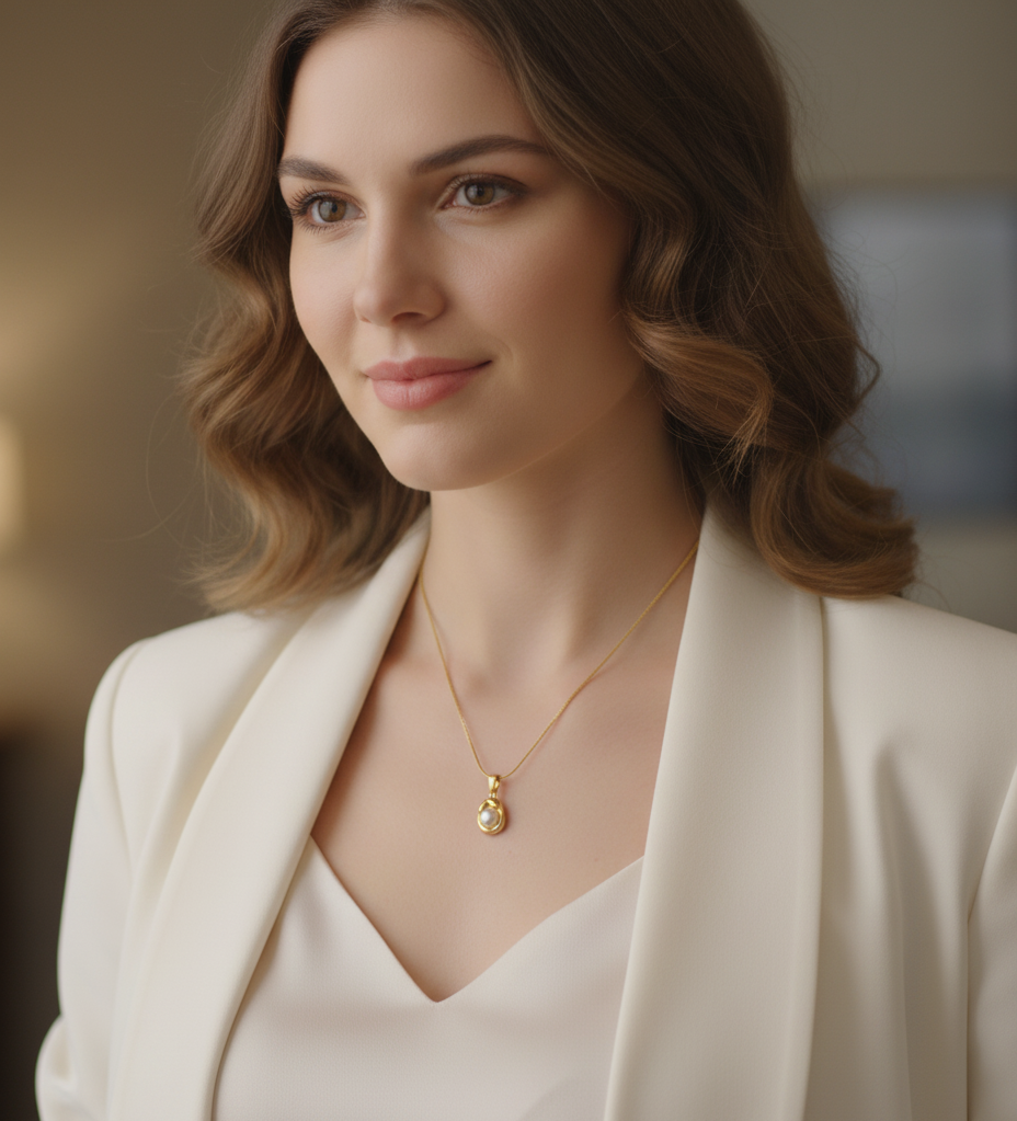 The classic pearl pendant adds a touch of grace and femininity to any look—perfect for work, events, or everyday wear.