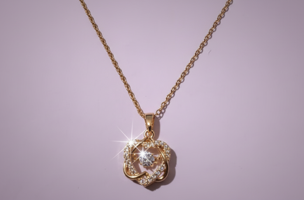 Add a touch of sophistication to your look with this Elegant Gold-Plated Heart Pendant . Made from high-quality stainless steel, this piece offers exceptional durability and a luxurious shine that lasts. The sparkling crystal centerpiece is encased in a graceful, intertwined circular design — symbolizing infinite beauty and strength.
