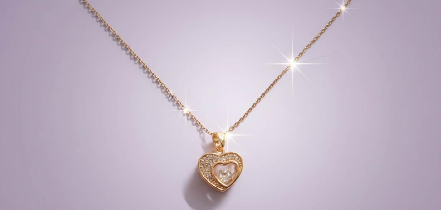 Fall in love with classic elegance. This Heart-Shaped Gold Necklace is made from premium stainless steel ensuring long-lasting durability and a brilliant anti-tarnish shine. The pendant features a beautifully detailed double-heart design, accented with sparkling stones that catch the light from every angle.