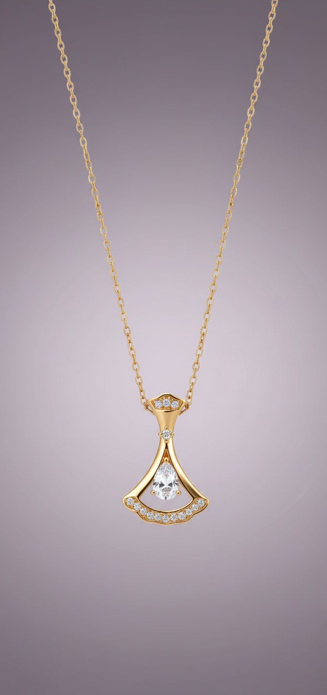 Upgrade your everyday jewelry collection with this stunning gold-plated pendant necklace made from premium stainless steel. Designed for modern women who value both elegance and durability, this necklace features a graceful teardrop stone in a unique fan-shaped pendant.